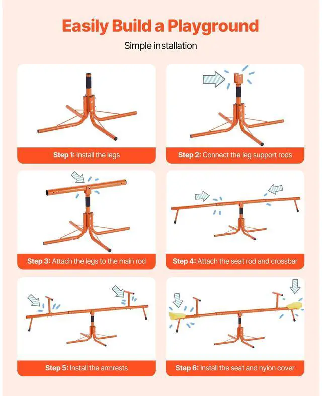 VEVOR Kids Seesaw 100 lbs Capacity Swiveling 360 Degrees Rotating Teeter Totter Fun Rotating Seesaw Stable Upgrade Away from Screens Security-first Design Indoor & Outdoor Use Vibrant Colors to Spark Interest