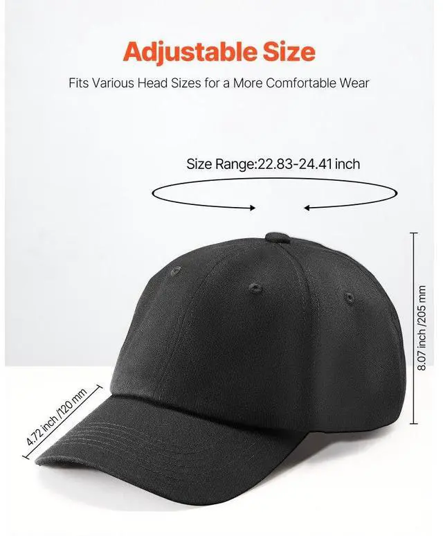 VEVOR Baseball Cap Plain Baseball Hats with Breathable Cotton Fabric Bulk 12 Pcs 12-Pack Baseball Caps Reliable and Comfortable Adjustable Size DIY Customization Wide Application 12-Pack Value