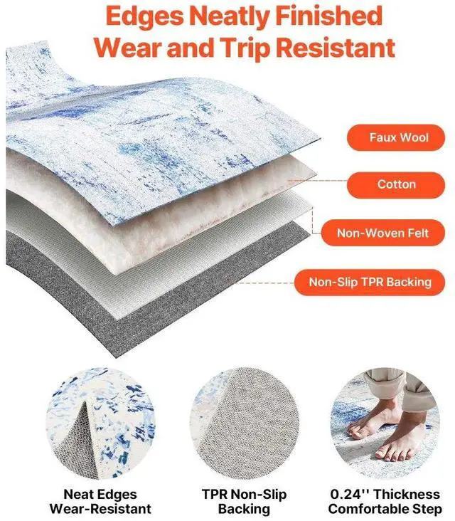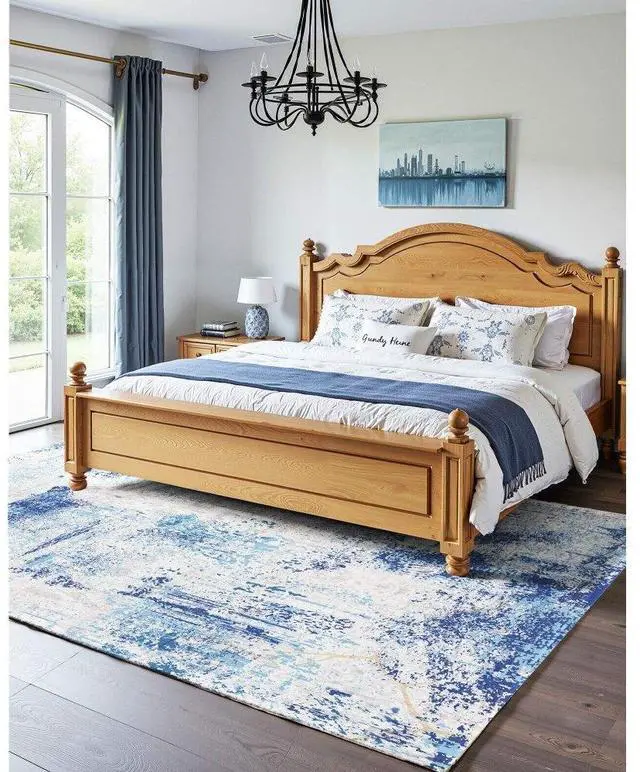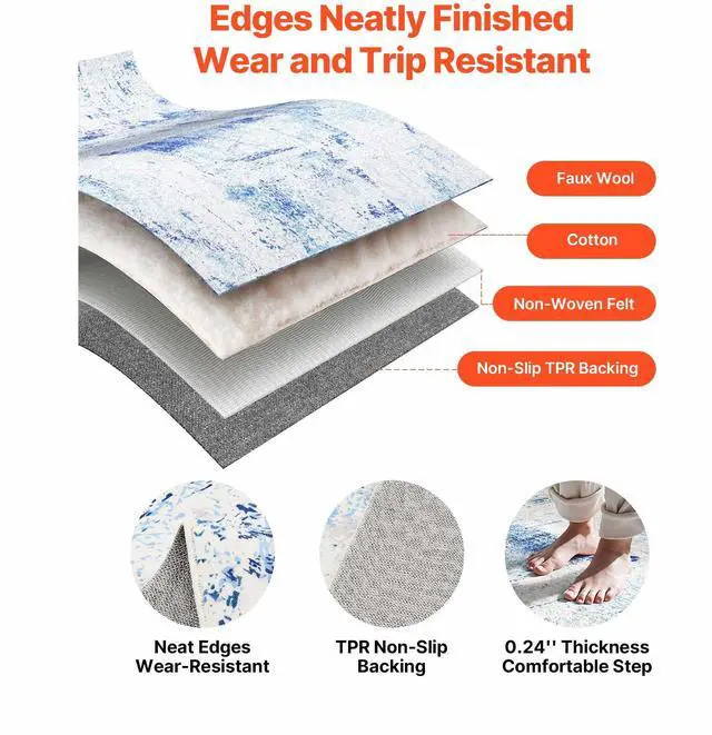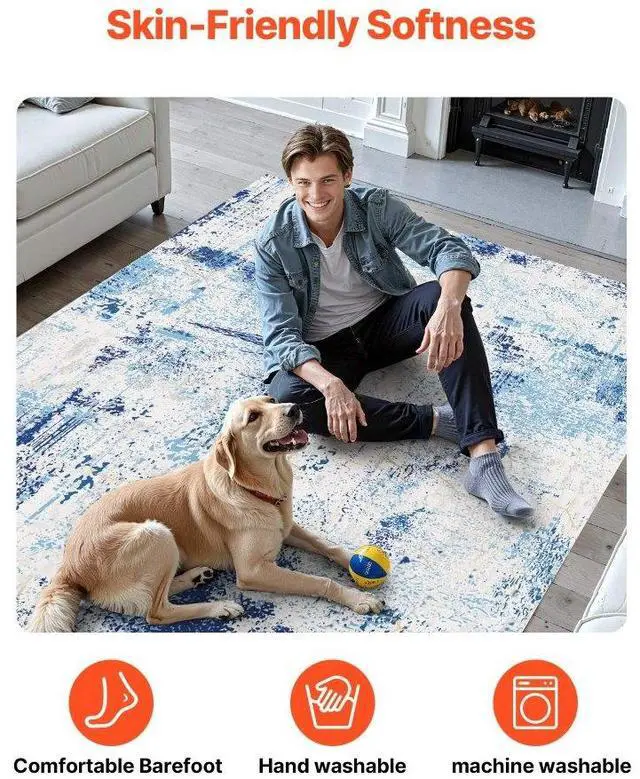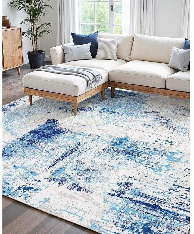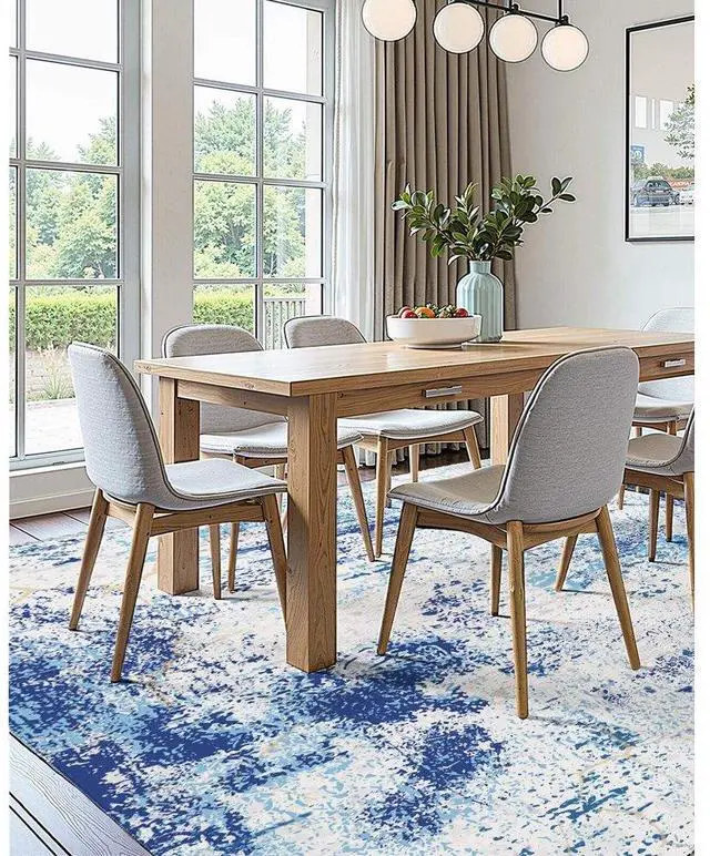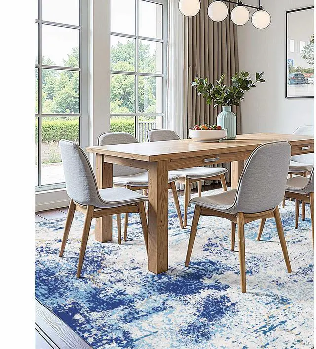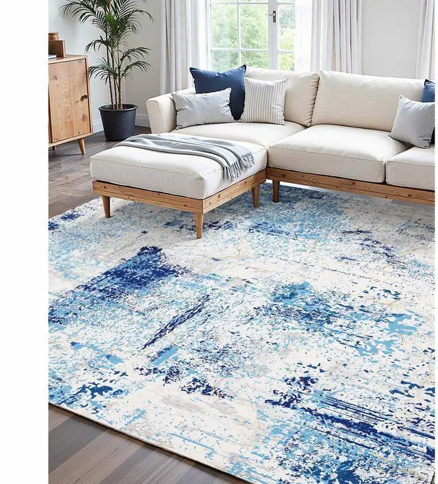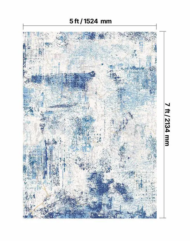 Large Area Rug 5 x 7 ft Anti-Skid and Tear-Resistant Floor Mat Modern Blue Multiple Size Options Cleaning Instructions Maintenance Guide Digital Printing Technology Color Variation Notice Versatile Styles Thickness: 0.24 inch / 6 mm, Color: Blue, Item
