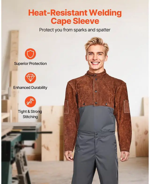 • VEVOR Leather Welding Cape Sleeve Heavy Duty Flame Resistant Cape Sleeve L-Size