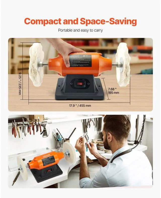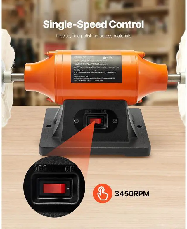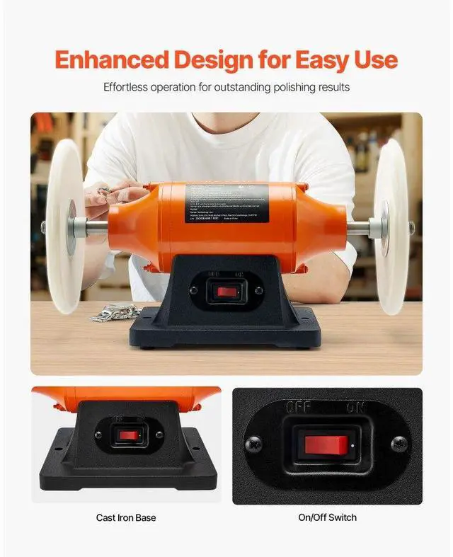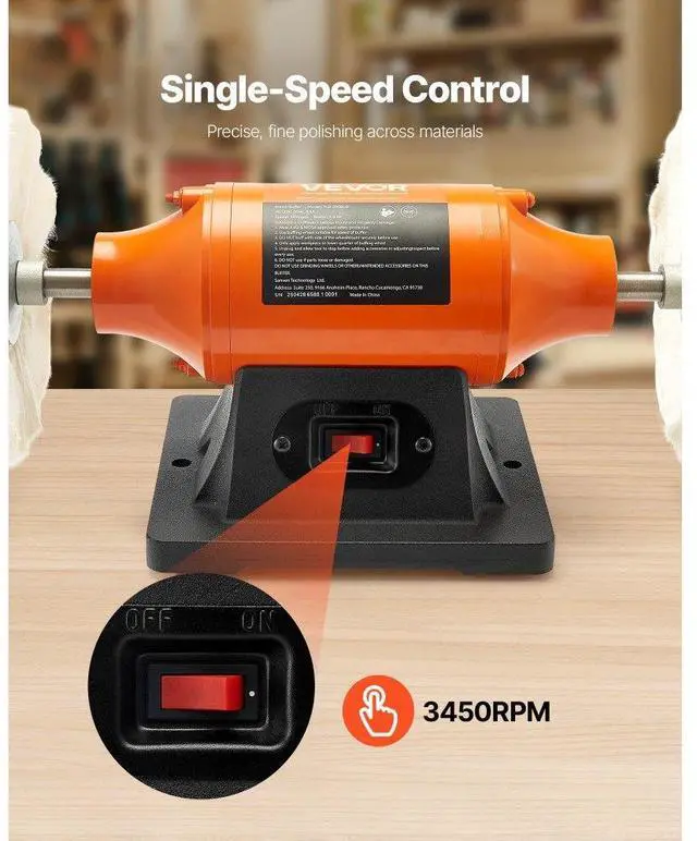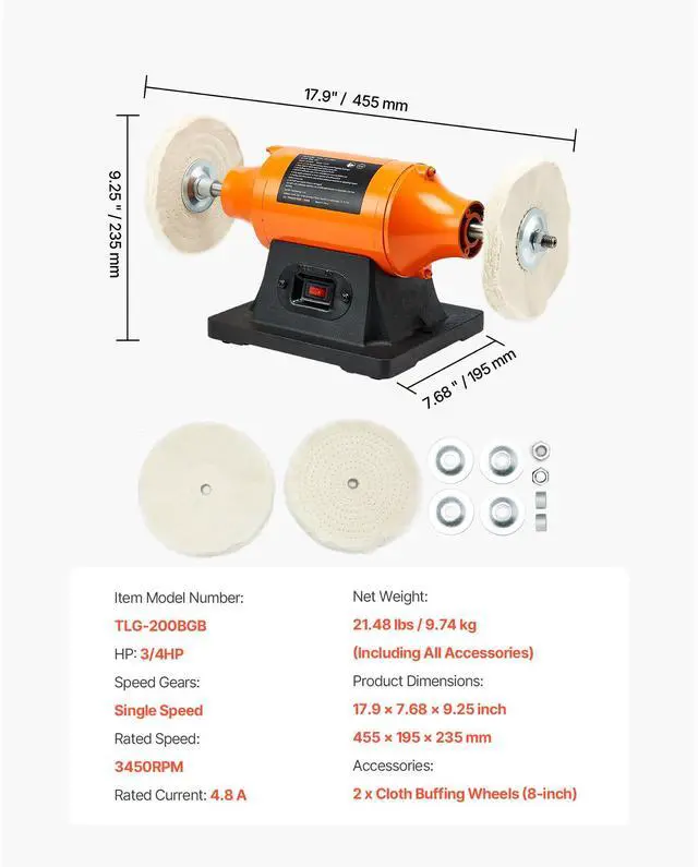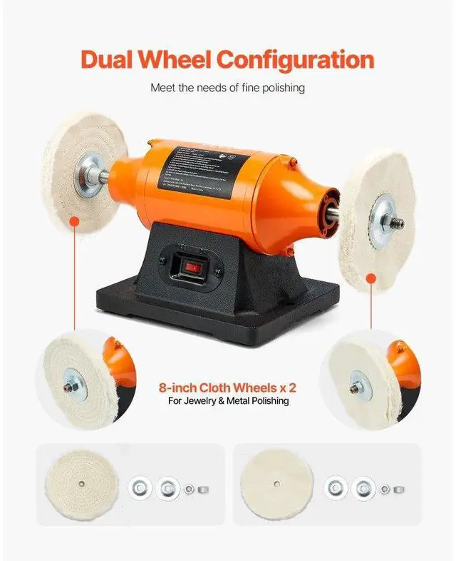 VEVOR 8" Bench Buffer Polisher 3/4 HP 3450RPM for Metal Jewelry Wood Polishing High-Efficiency Polisher Single-Speed Operation Dual-Wheel Setup Stable Polishing Versatile Usage Compact & Easy to