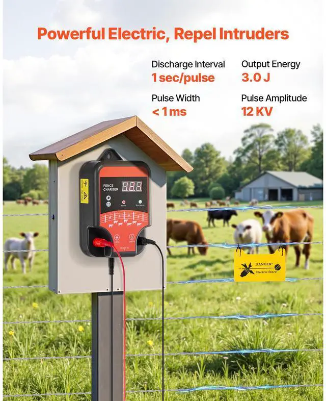 Electric Fence Charger 10kV 3J AC DC Electric Fence Energizer 1.86 Miles Range Powerful Shock Output Multiple Power Options IP65 Waterproof & Durable Wide Coverage & Flexible Installation Versatile Applications Real-Time Monitoring