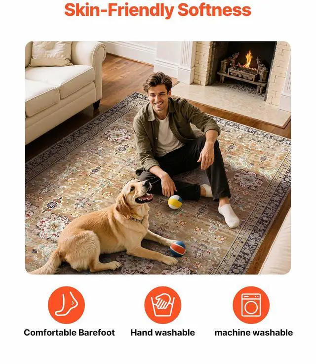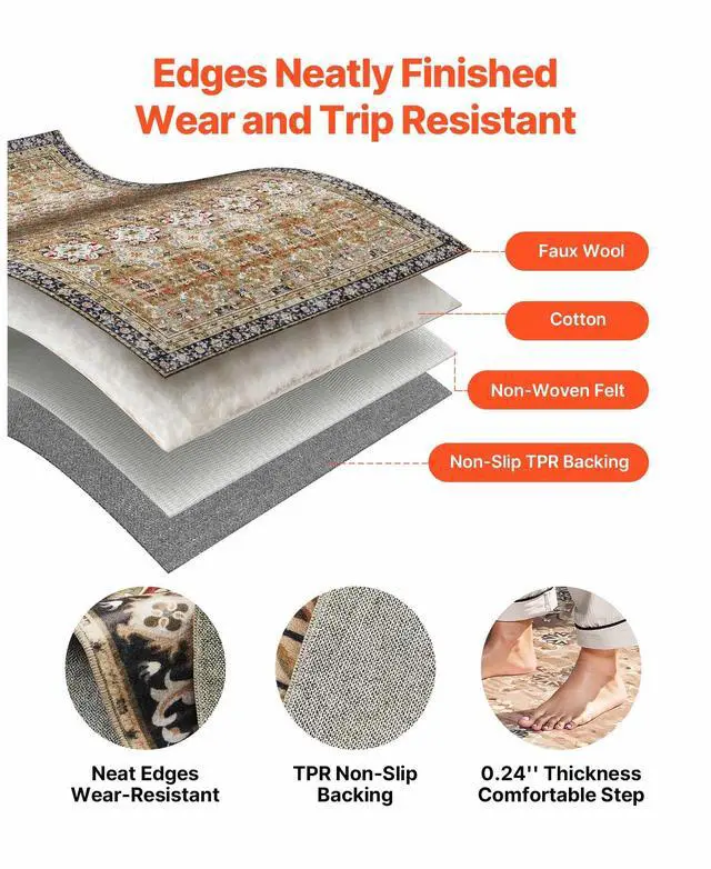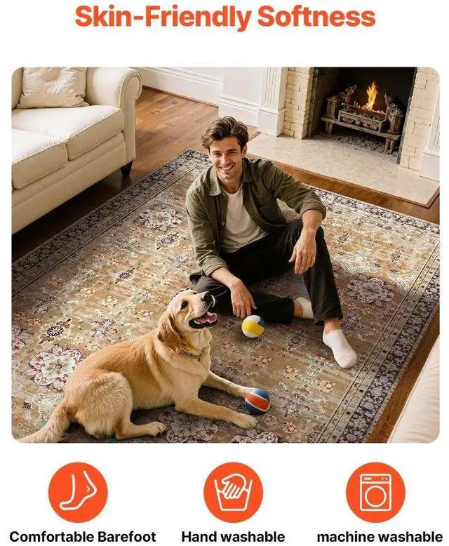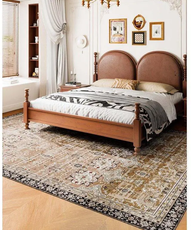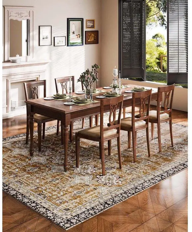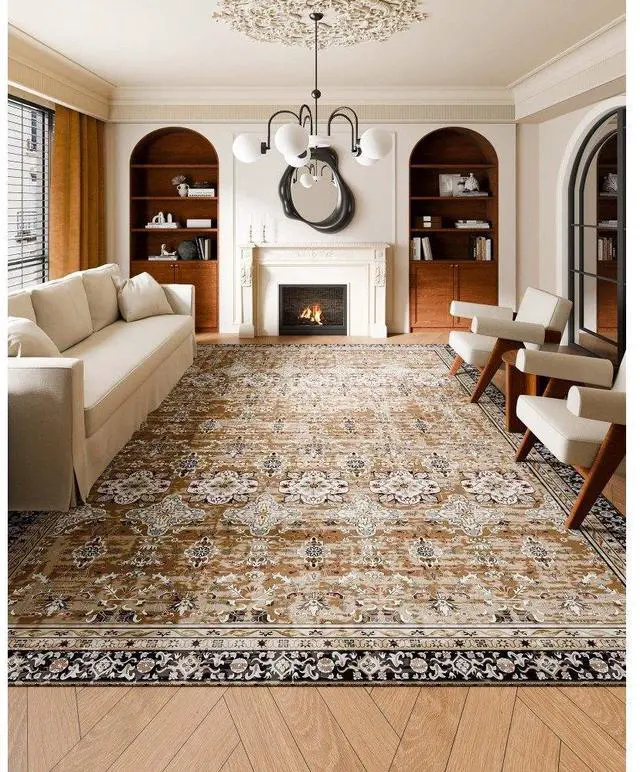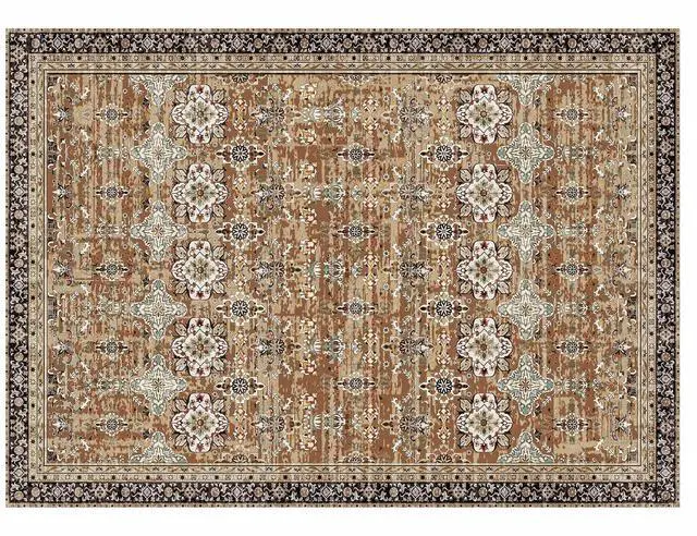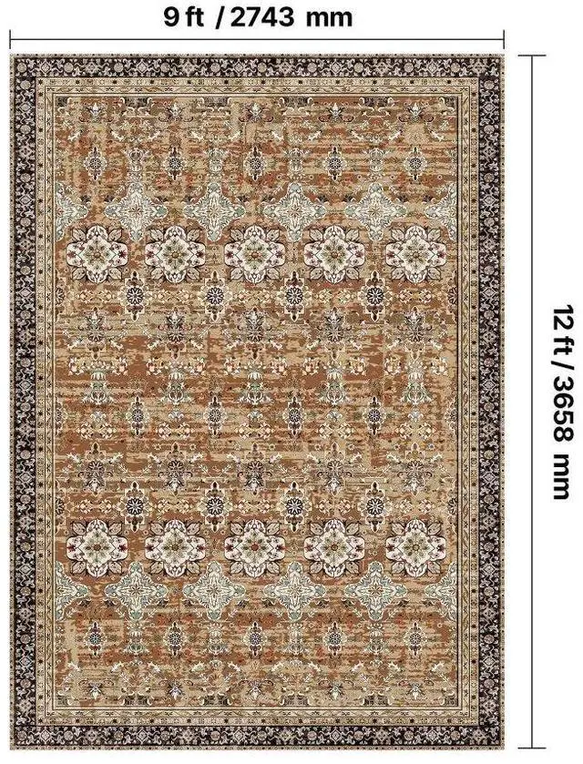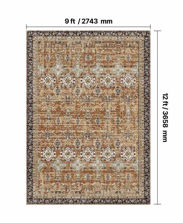 Large Area Rug 9 x 12 ft Anti-Skid Tear-Resistant Floor Mat Vintage Brown Green Multiple Size Options Cleaning Instructions Maintenance Guide Digital Printing Technology Color