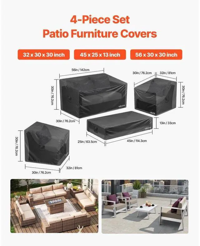 Patio Outdoor Furniture Cover 4-Piece Set 420D Waterproof Table Chair Sofa Universal Fit Premium Material Four-Season Protection Easy Installation Dual-Side Air Vents Tip for Use Product
