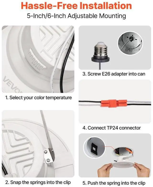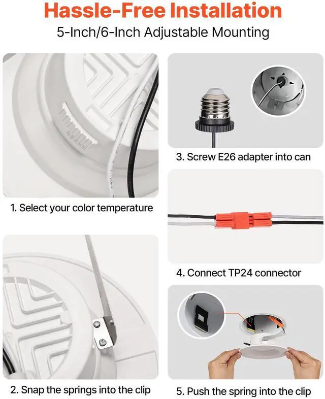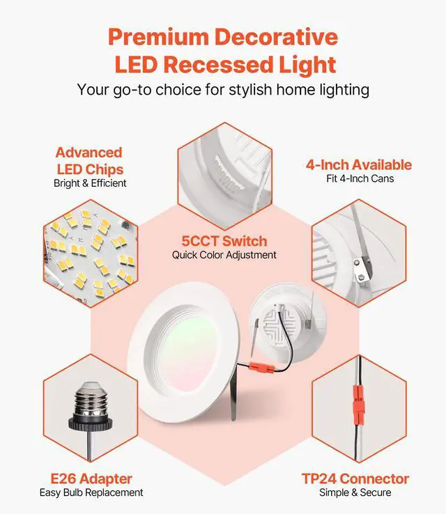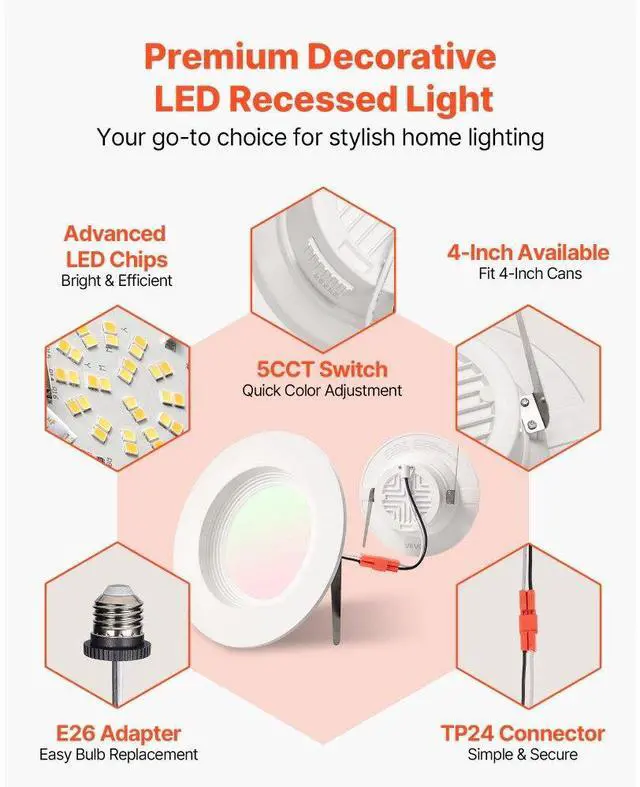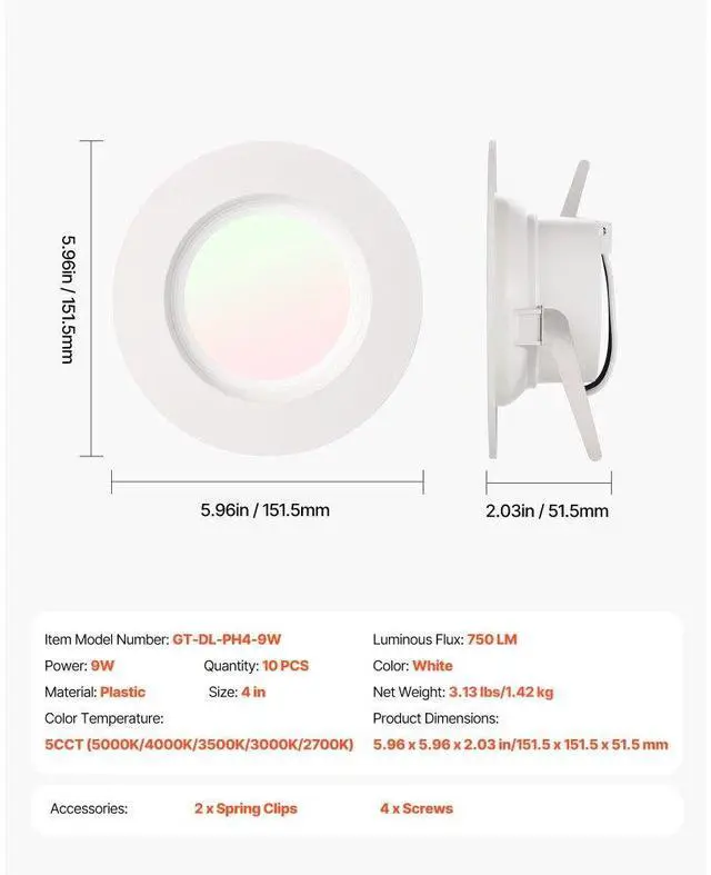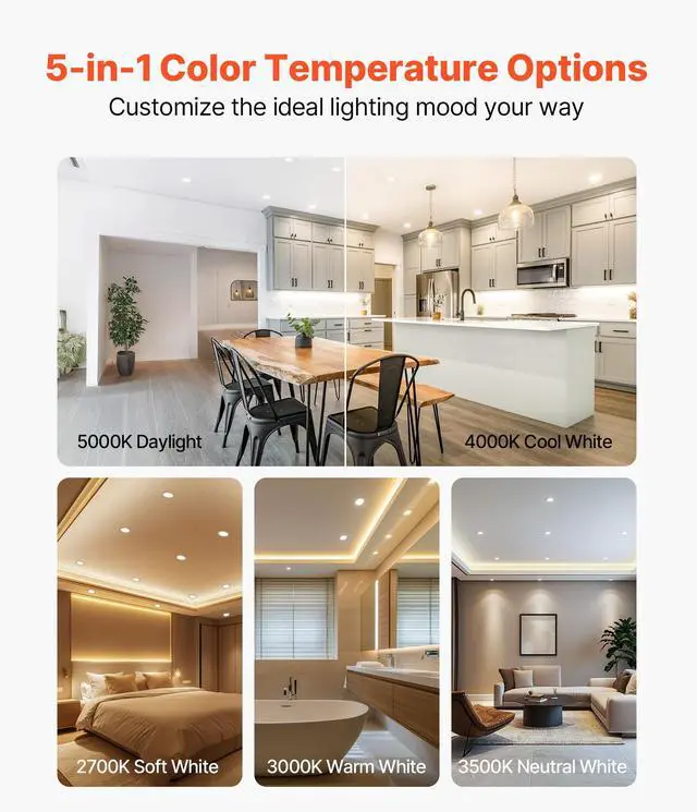 10 Pack LED Recessed Lighting 4 Inch Retrofit Can Lights 750 LM 9W 120V 5CCT 4-Inch Retrofit LED Recessed Lighting 5-in-1 Color Temperature Selection Easy Installation 90° Wide Beam Angle Durable & Long-Lasting Sleek & Modern