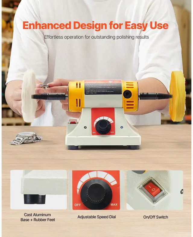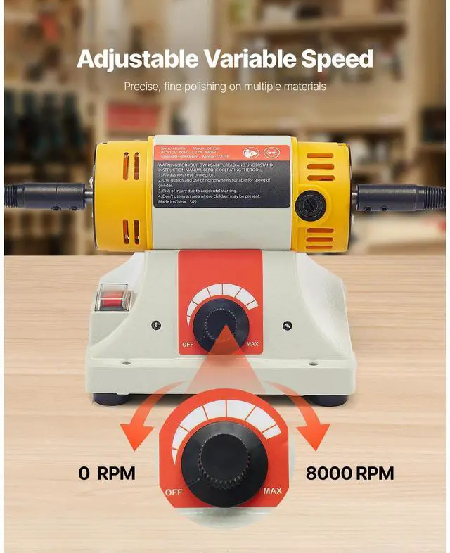 VEVOR 1/2HP Bench Buffer Polisher 0 to 8000RPM with 3-inch & 4-inch Wheels High-Efficiency Polisher Multi-Speed Adjustable Buffer All-Inclusive Accessory Kit User-Friendly Design Versatile Usage Compact & Easy to