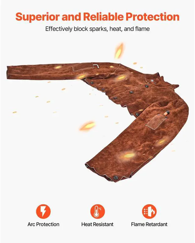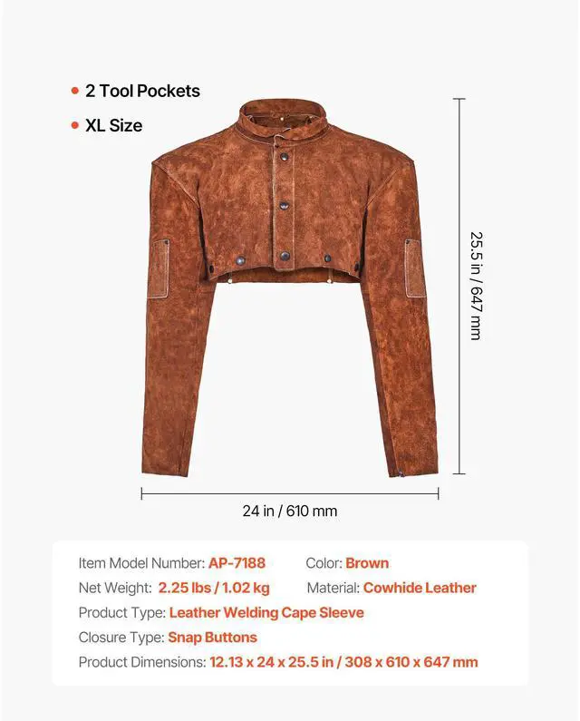 VEVOR Leather Welding Cape Sleeve Heavy Duty Flame Resistant Cape Sleeve XL-Size Premium Material Extended Protection Thoughtful Designs Wide Applications High Quality Warm Tips Tool Pockets: 2,