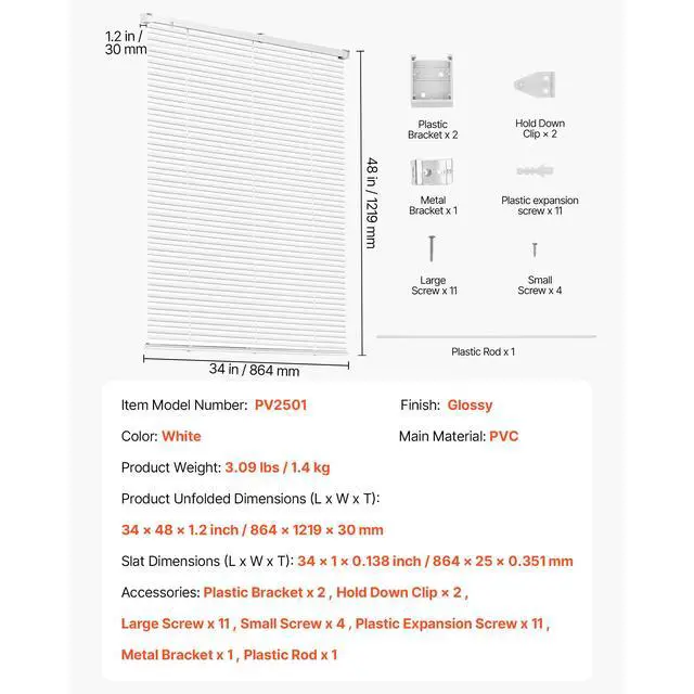 T): 34 x 48 x 1.2 inch / 864 x 1219 x 30 mm, Slat Dimensions (L x W x