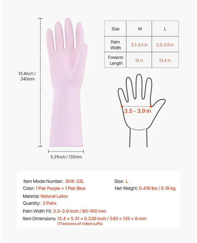 Model Number: SHX-32L, Quantity: 2 Pairs, Material: Natural Latex, Item