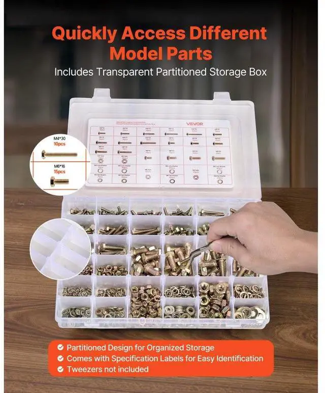 906 Pcs Bolts Nuts Assortment Kit Metric Alloy Steel M4 M5 M6 M8 Comprehensive Set Multiple