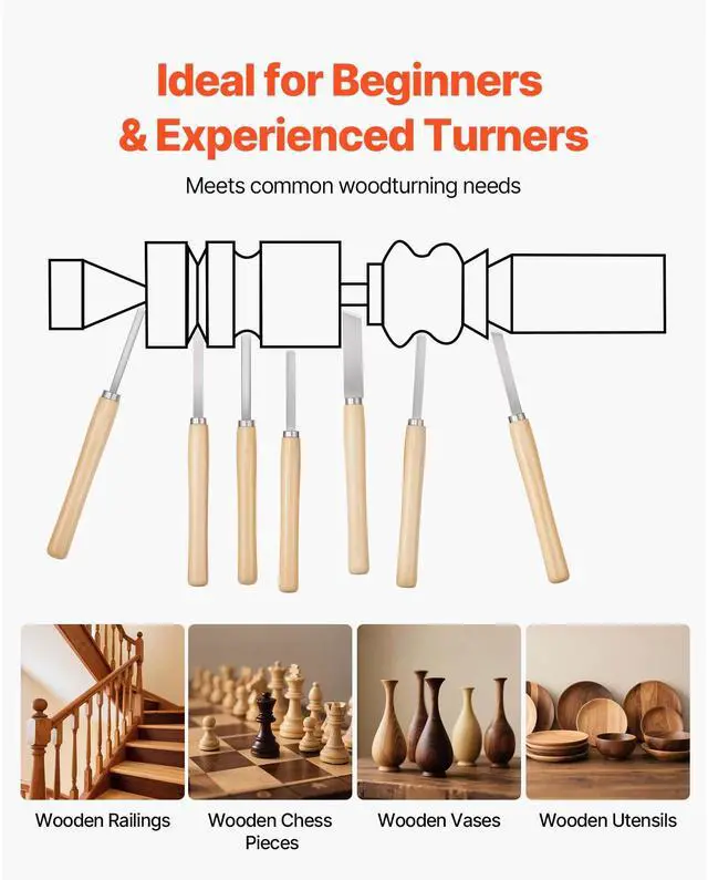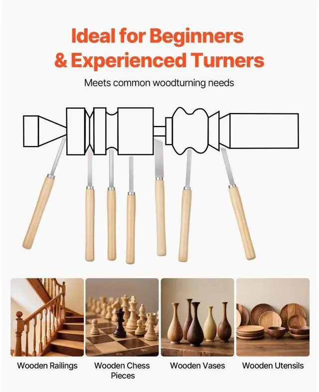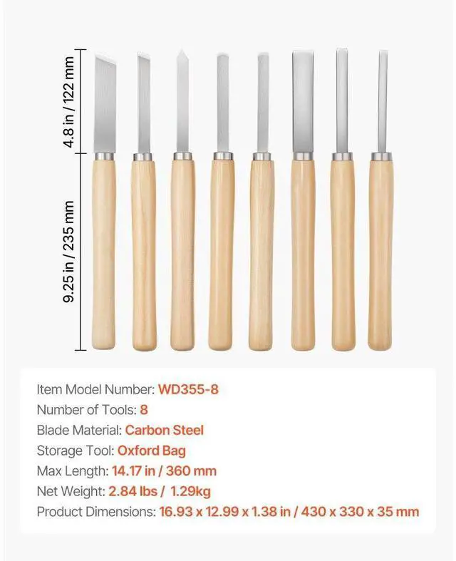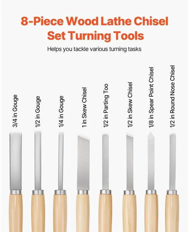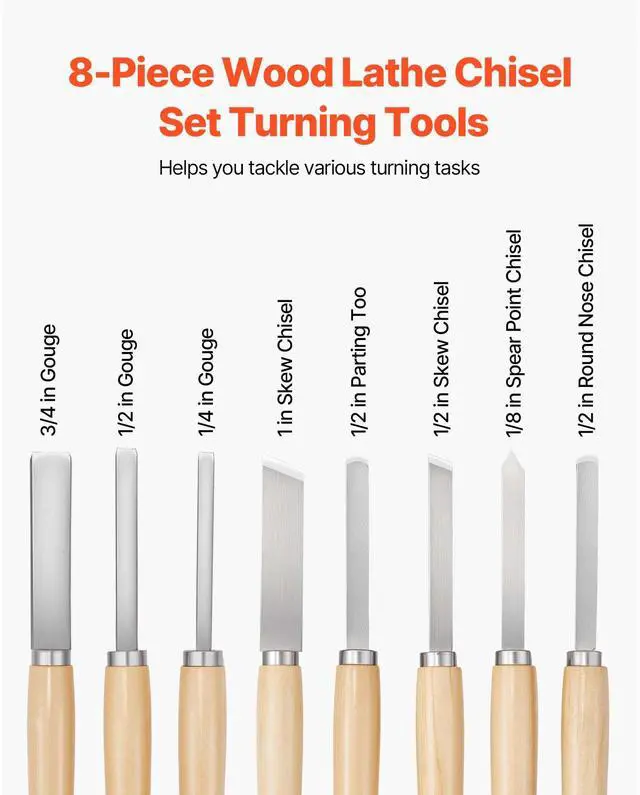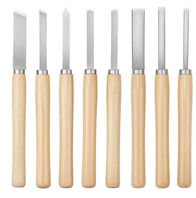 8PCS Wood Lathe Chisel Set Woodturning Tools Steel Blades for Lathe Finisher Versatile Use Pre-Sharpened Blades Easy to Use Wide Application Portable and Convenient 8 Piece Set