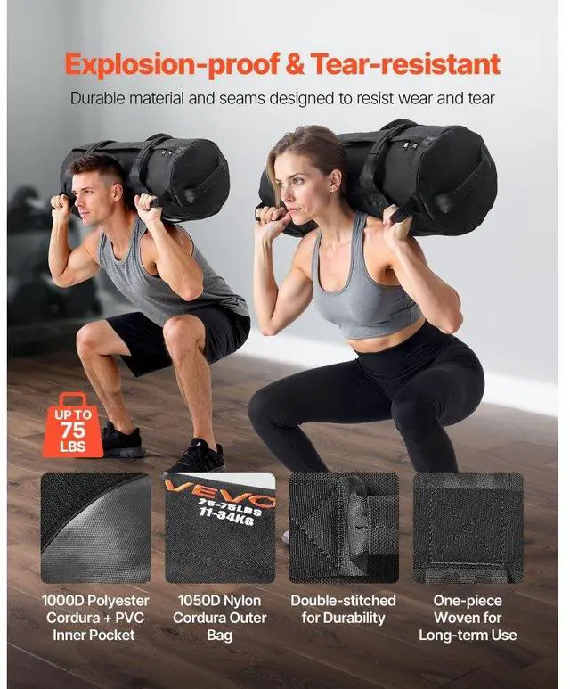 Workout Sandbag Heavy Duty Fitness Bag for CrossFit and Weight Training 25-75lbs Workout Sandbag Durable & Impact-Resistant Design Pressure-resistant Design Full-Body Training Enhanced Training with Thoughtful Design Easy to Use