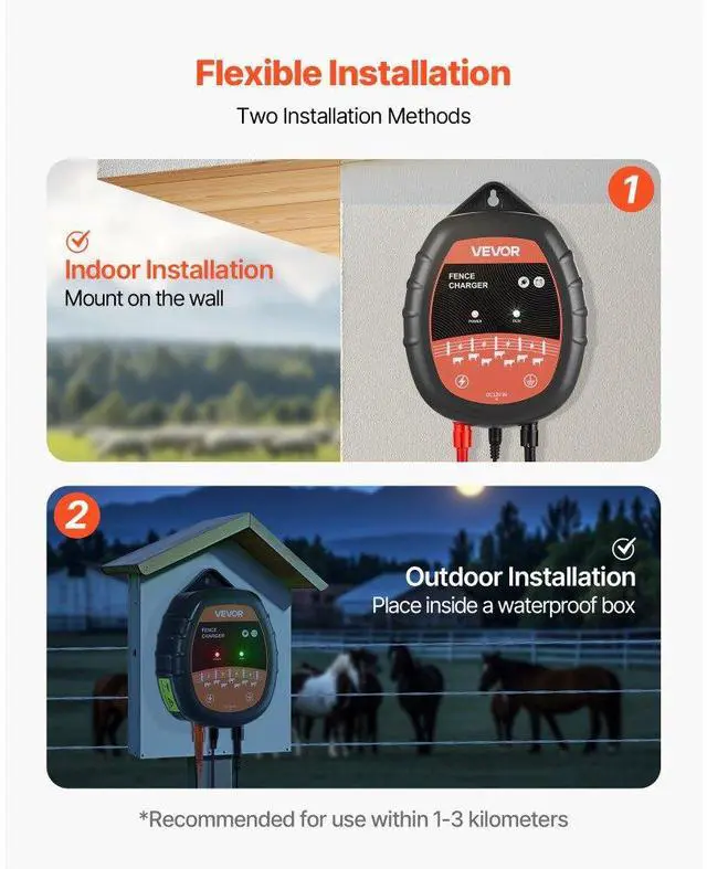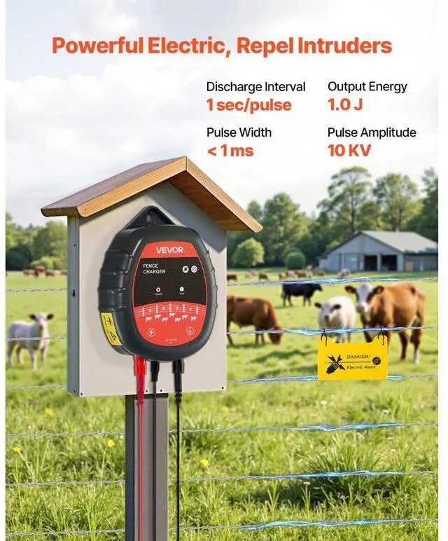 Electric Fence Charger 10kV 1J AC DC Electric Fence Energizer 1.86 Miles Range Powerful Shock Output Multiple Power Options IP65 Waterproof & Durable Wide Coverage & Flexible Installation Versatile Applications Real-Time Monitoring