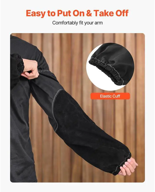 VEVOR Flame Resistant Welding Work Sleeve Heavy Duty Cowhide Leather & FR Cotton Premium Material Extended Protection Thoughtful Designs Wide Applications High Quality Warm Tips