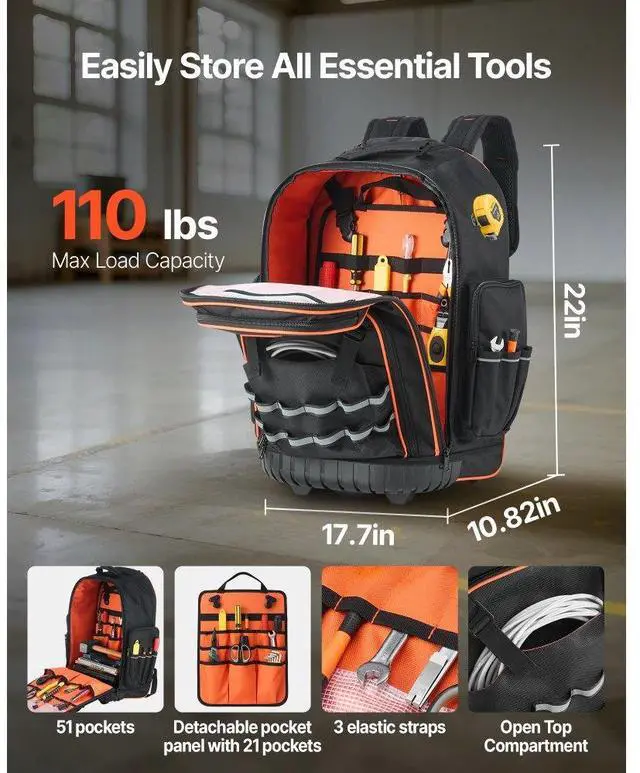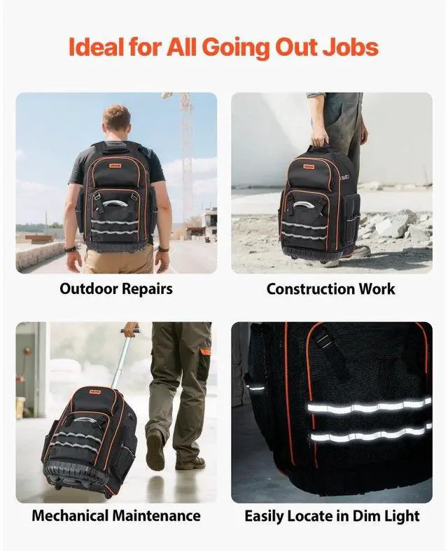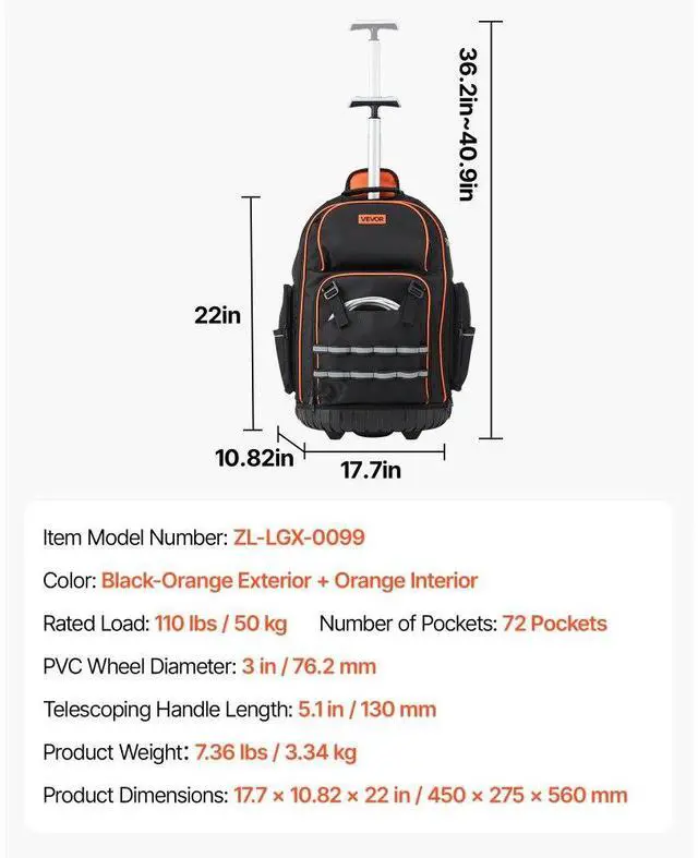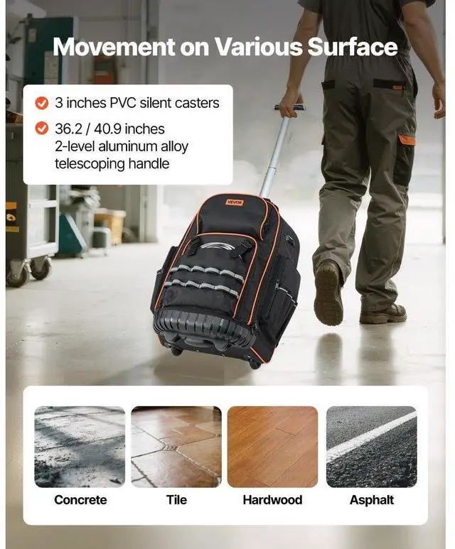 VEVOR Rolling Tool Backpack 72 Pockets Heavy Duty Roller Tool Bag on Wheels The Ideal Work Companion Easy Tool Transport Built to Last Versatile Use Hidden Design Shoulder Strap