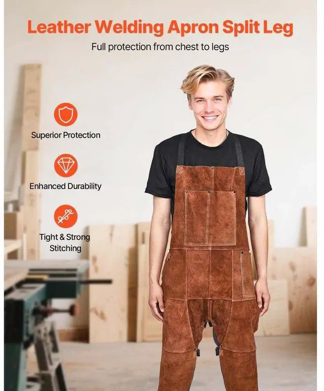 VEVOR Leather Welding Apron Split Leg Heavy Duty Flame Resistant Cowhide L-Size Premium Material Extended Protection Thoughtful Designs Wide Applications High Quality Warm Tips Tool Pockets: 3,