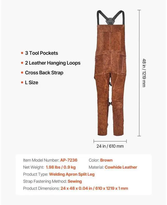 Product Type: Welding Apron Split Leg, Size: L, Color: Brown, Item