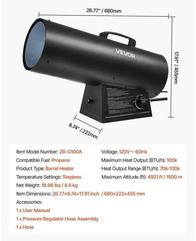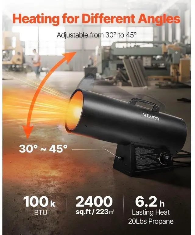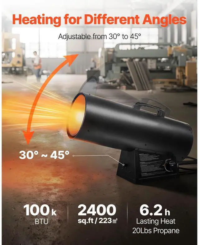 Portable Propane Air Heater 100000BTU Stepless Temp Settings Outdoor Efficient Heating Sturdy and Weather-Resistant Adjustable Temperature Versatile for Various Spaces Simple Operation Low Noise Maximum Heat Output: 100k BTU/h, Heat