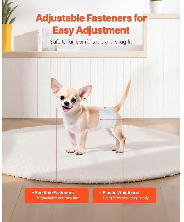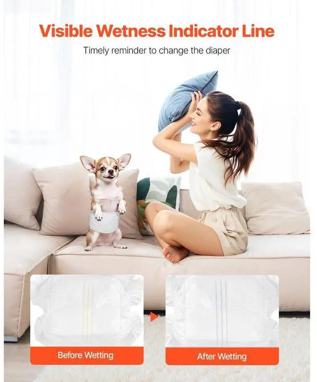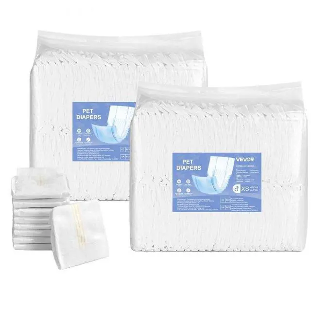 VEVOR Disposable Male Dog Diapers Super Absorbent Male Dog Wrap XS Size 96 Count 96-Piece Disposable Male Dog Diapers Super-Absorbent Capacity Comprehensive Care Widely Applicable Easy to Use Large