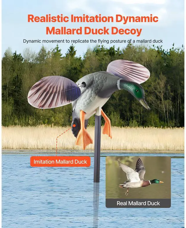 Spinning Wing Motion Duck Decoy Outdoor Realistic Teal Decoys for Hunting 1-Pack Realistic Duck Decoy Easy to Control Long-lasting Performance Simple to Use High Quality Material Installation Rod Shape: High-Realism Mallard Duck, Item