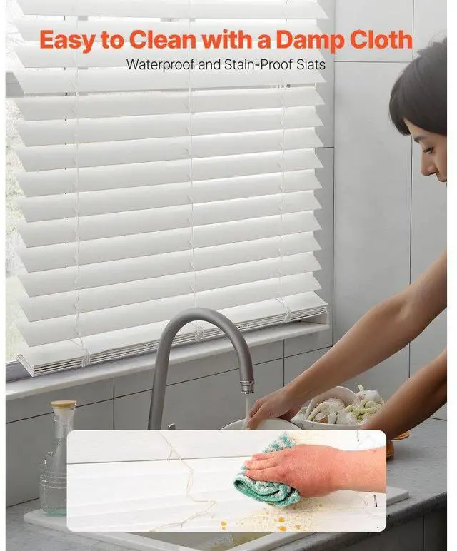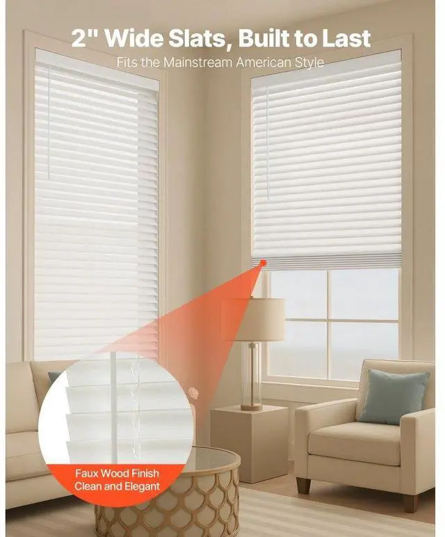 Faux Wood Blinds 2" Slat 34.5" W x 60" H Cordless Window Blinds and Shades White Minimalist Design Elegant Finish Easy to Operate Durable Material Versatile Style Compatibility Secure and Stable