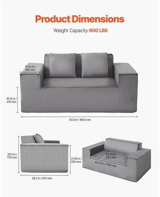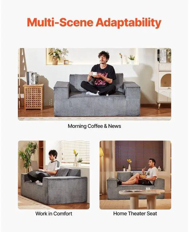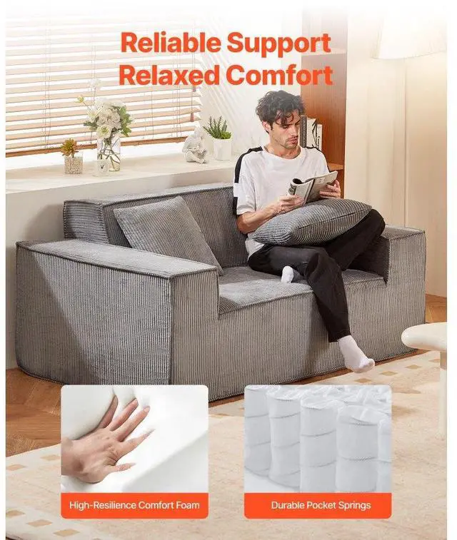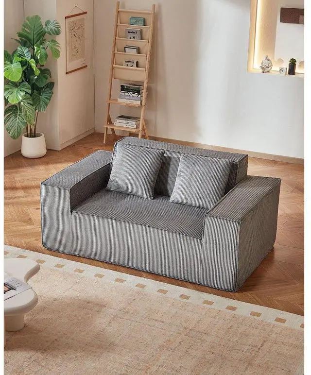 Loveseat Sofa 63-Inch 2-Seats Small Corduroy Couch No Assembly Required Gray Corduroy Loveseat Sofa Plush Comfort & Strong Stability Ergonomic Support & Wide Armrests No Assembly Needed Suitable for Any Space Rebound