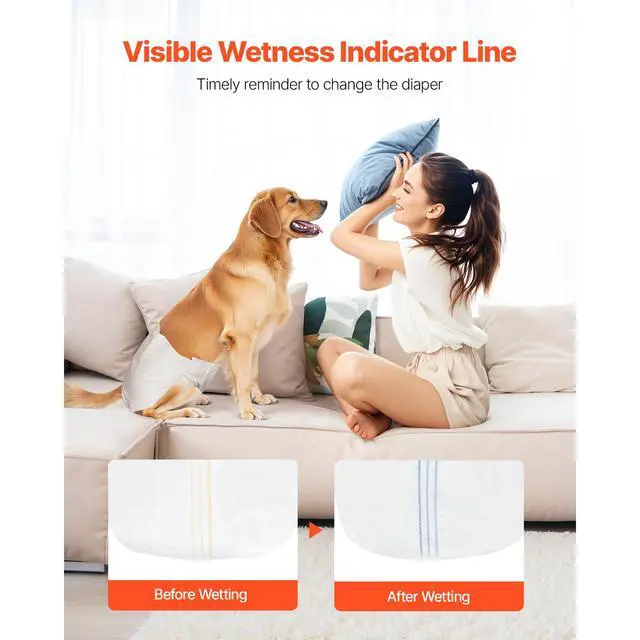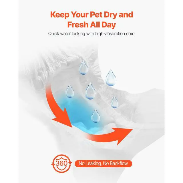 VEVOR Disposable Dog Diapers Super Absorbent Female Dog Diapers M Size 144 Count 144-Count Disposable Female Dog Diapers Super-Absorbent Capacity Comprehensive Care Widely Applicable Easy to Use Large