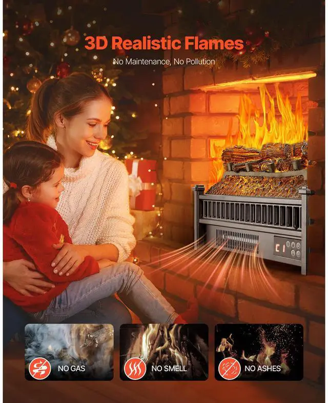 20 Inch Electric Fireplace Log Heater with Remote 5 Flame Brightness Timer All-Season Warmth Colorful Flames Secure Night Use Two Control Methods Wide Application Unrestricted Use Airflow: 48 CFM, Air