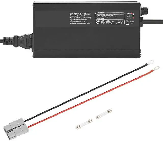 VEVOR 12V 10A Lithium Battery Charger 14.6V AC-DC LiFePO4 Smart Charger for RV DC Side AC Side Convenient Anderson Connector+M8 Terminal Adapter Cable Multiple Security Protections Convenient Anderson Connector Durable and Reliable