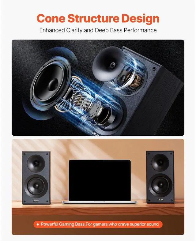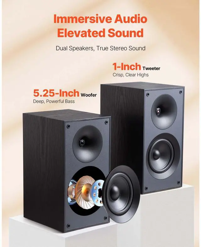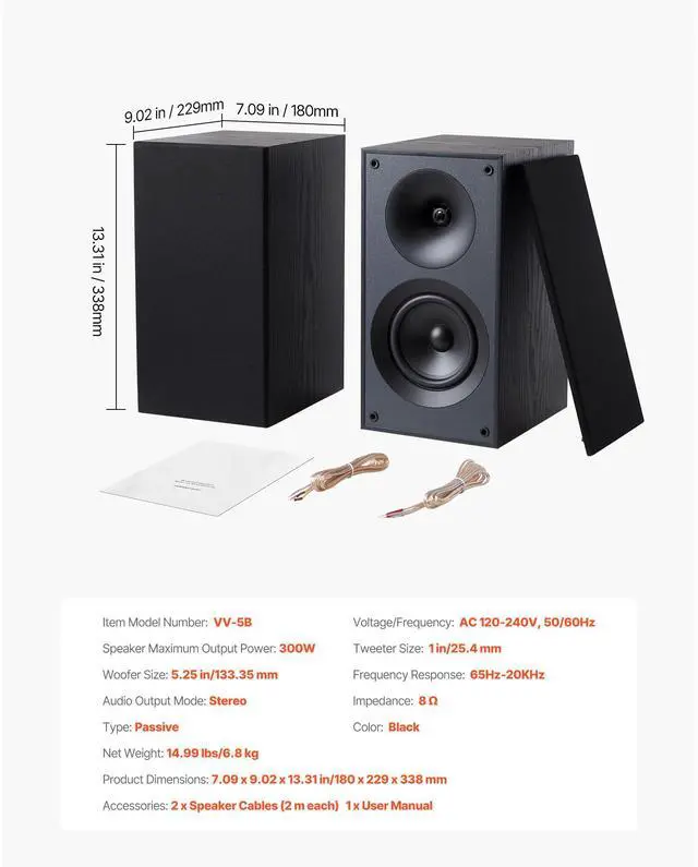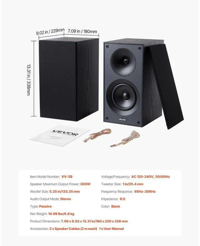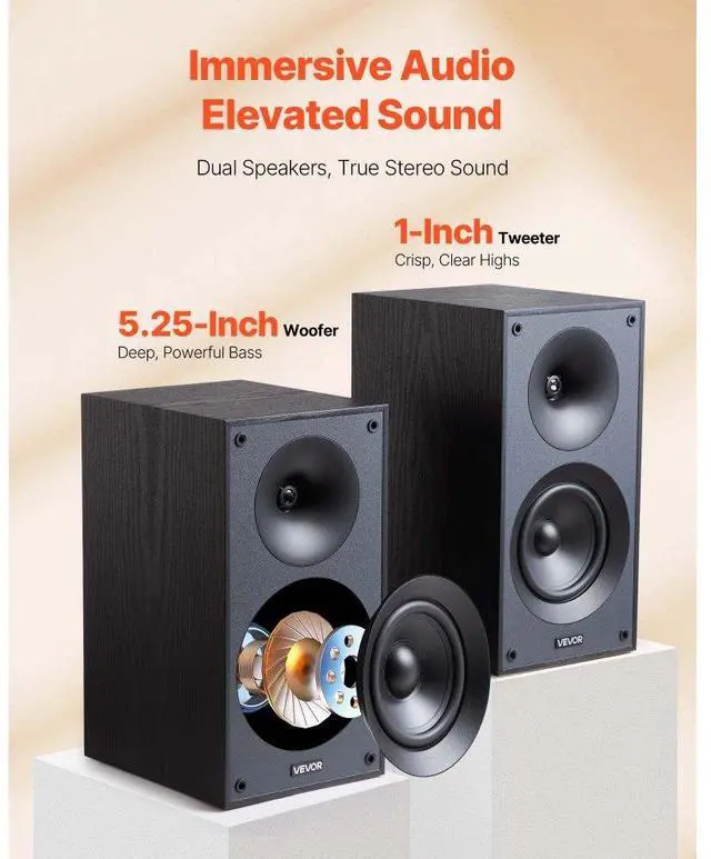 Passive Bookshelf Home Speakers Pair of Stereo Audio Speakers Cone 65Hz-20KHz 4-Inch Passive Bookshelf Speaker 300W Room-Filling Sound Efficient Transmission Premium MDF Wooden Enclosure Stylish for Any Space Complete