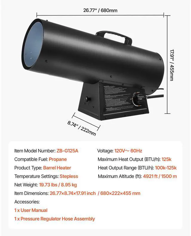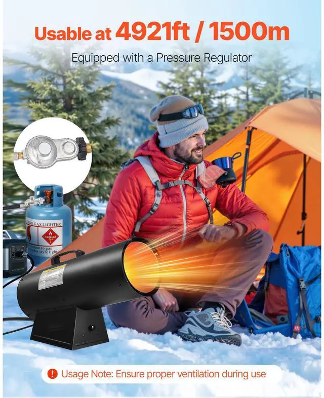 Portable Propane Air Heater 125000BTU Stepless Temp Settings Outdoor Efficient Heating Sturdy and Weather-Resistant Adjustable Temperature Versatile for Various Spaces Simple Operation Low Noise Maximum Heat Output: 125k BTU/h, Heat