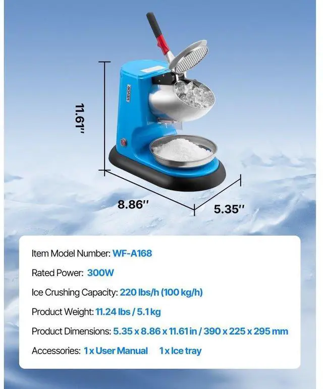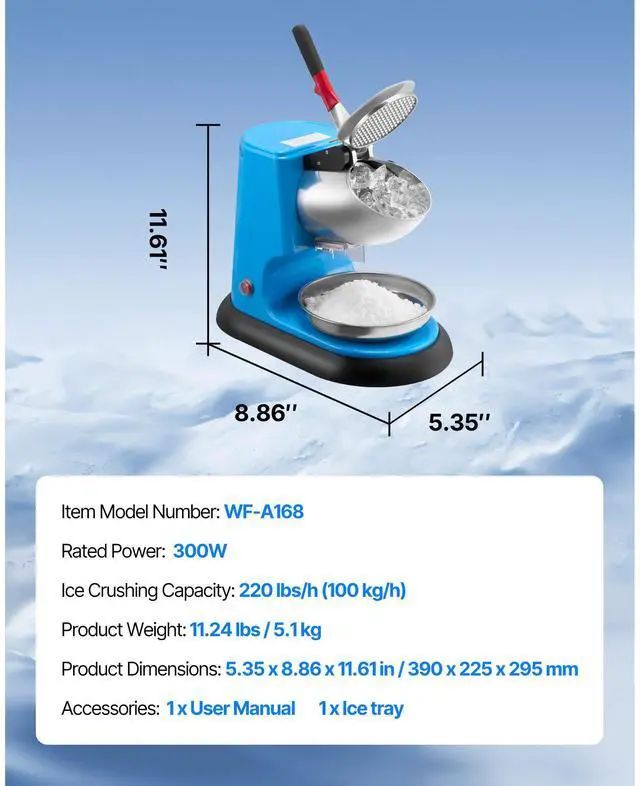 Ice Crushing Capacity: 220 lbs/h (100 kg/h)