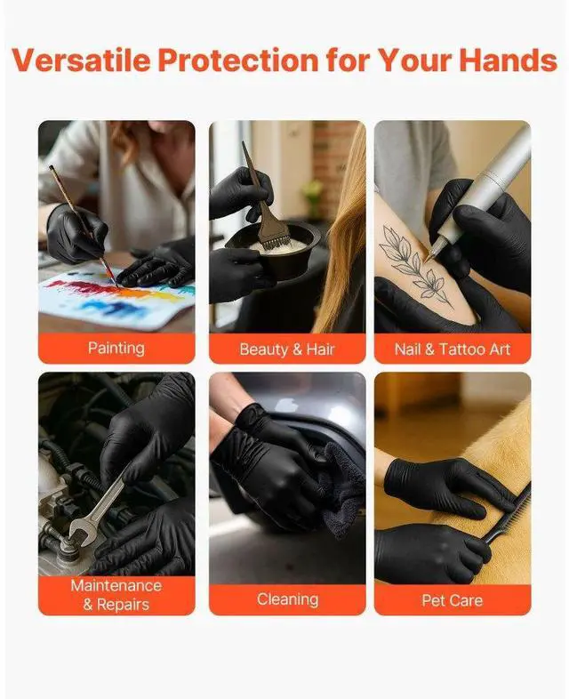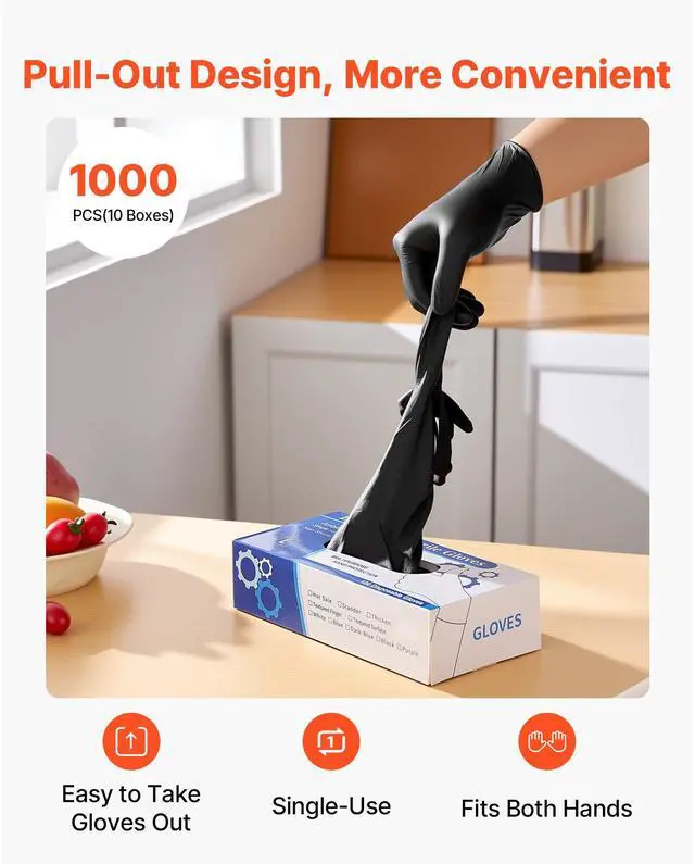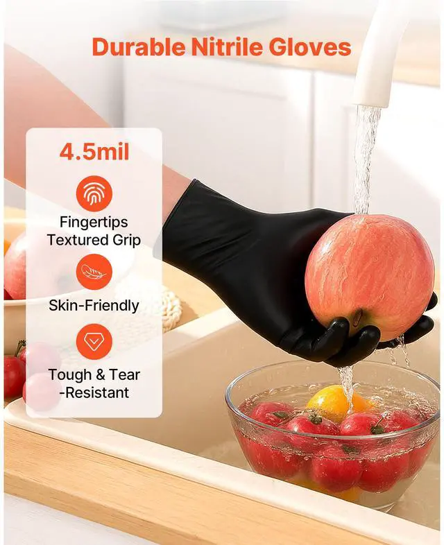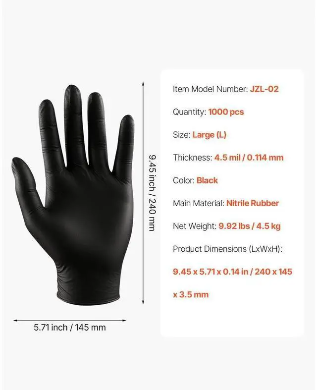 Black Nitrile Disposable Gloves 4.5 Mil Latex & Powder-Free 1000 Count Size L Thickened Nitrile Gloves Pull-out Design Textured Fingertips High-Quality