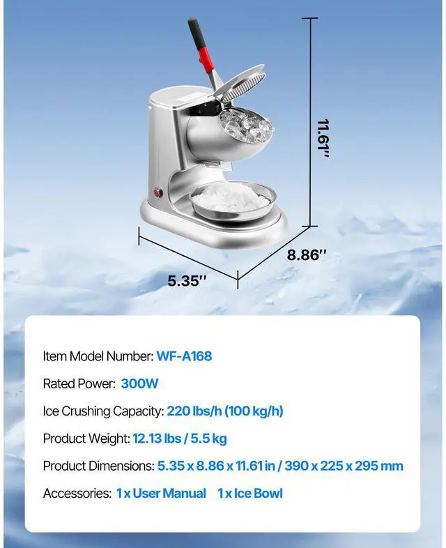 Ice Crushing Capacity: 220 lbs/h (100 kg/h)