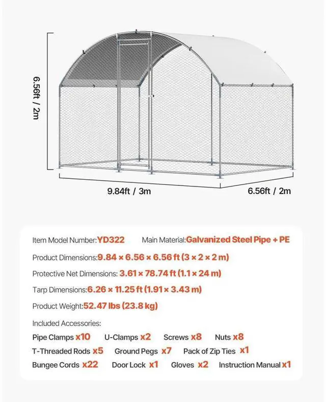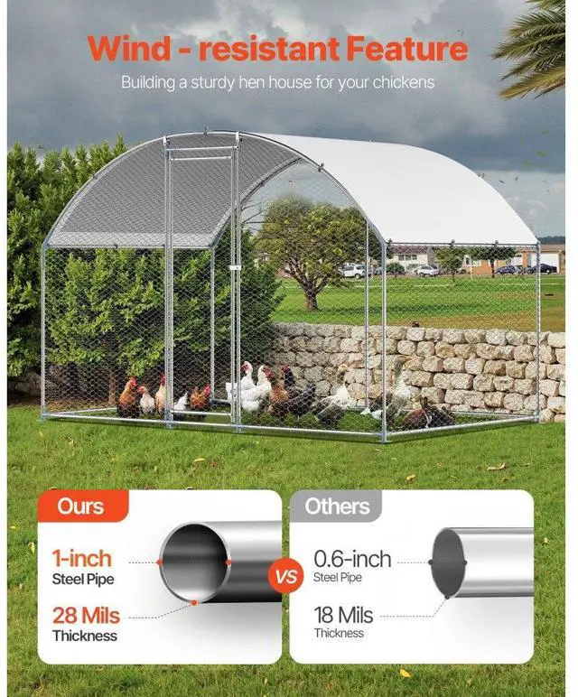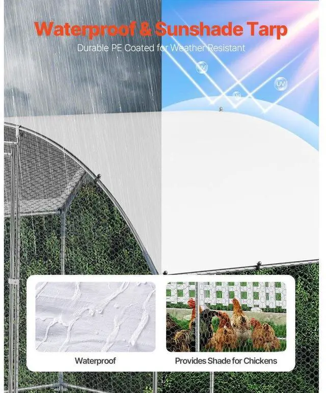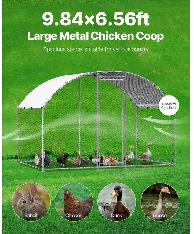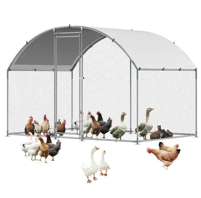 Metal Chicken Coop 9.8 x 6.5 x 6.5 ft Walk-in Chicken Run with Cover Doom Roof Sturdy Structure Ideal Shelter for Chincken Convenient Usage Versatile Application PE Canopy Optimal Comfort and