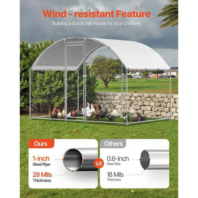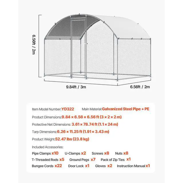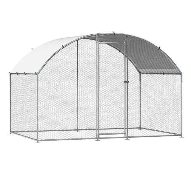Metal Chicken Coop 9.8 x 6.5 x 6.5 ft Walk-in Chicken Run with Cover Doom Roof Sturdy Structure Ideal Shelter for Chincken Convenient Usage Versatile Application PE Canopy Optimal Comfort and
