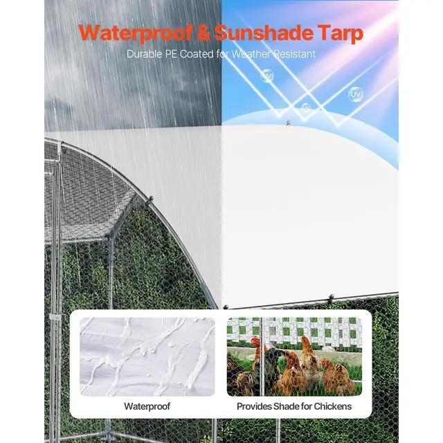 • Metal Chicken Coop 9.8x6.5x6.5ft Walk-in Chicken Run with Cover Doom Roof