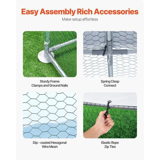 Metal Chicken Coop 9.8x6.5x6.5ft Walk-in Chicken Run with Cover Doom Roof