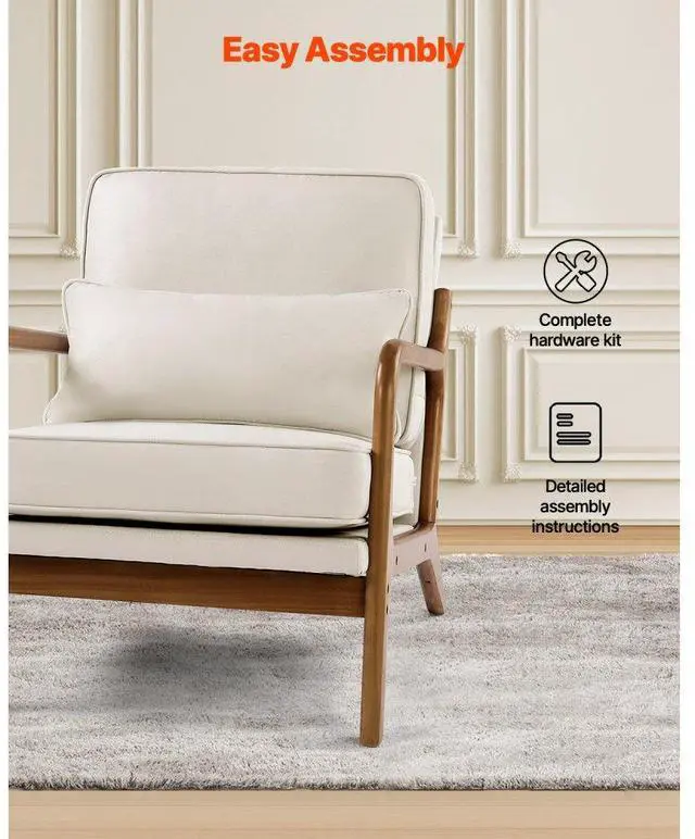 Mid-Century Modern Accent Chair Linen Fabric Armchair with 5.7 in Cushion Wooden Accent Chair Ergonomic Design Premium Materials Sturdy and Durable Versatile Design Thoughtful