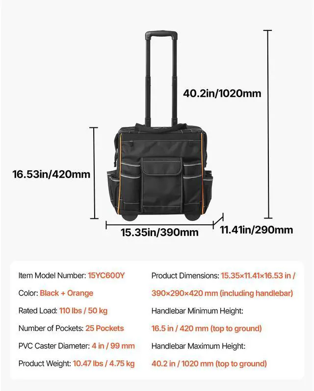 Main Material: 1680D Polyester Oxford Cloth Exterior / 600D Polyester Oxford Cloth Interior