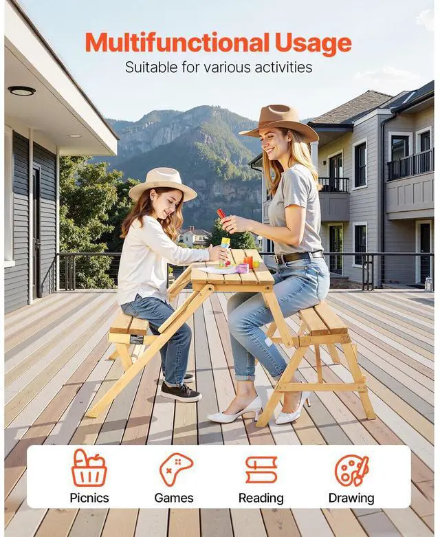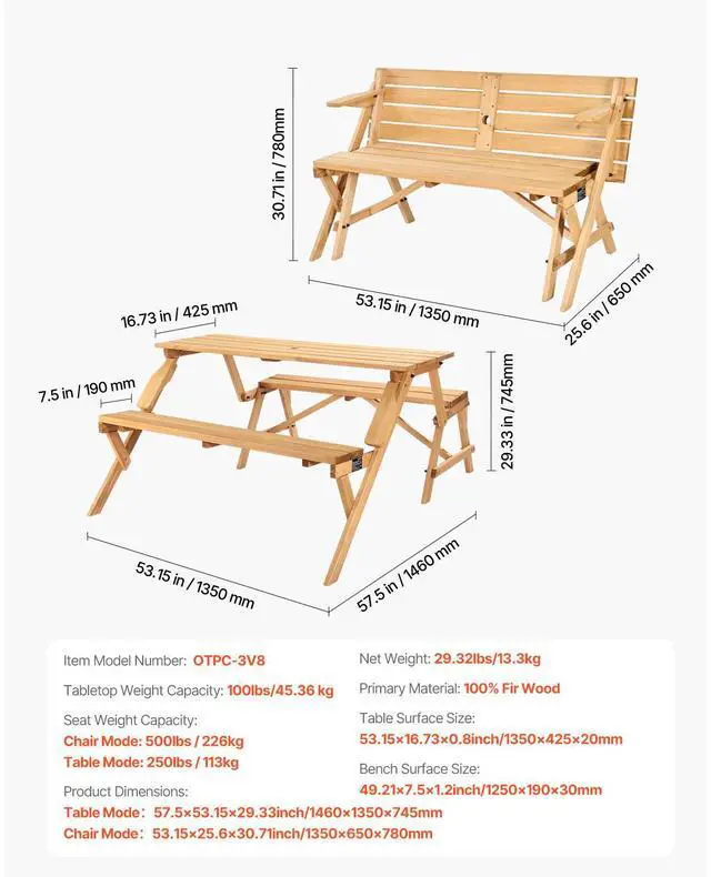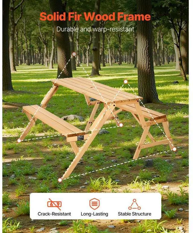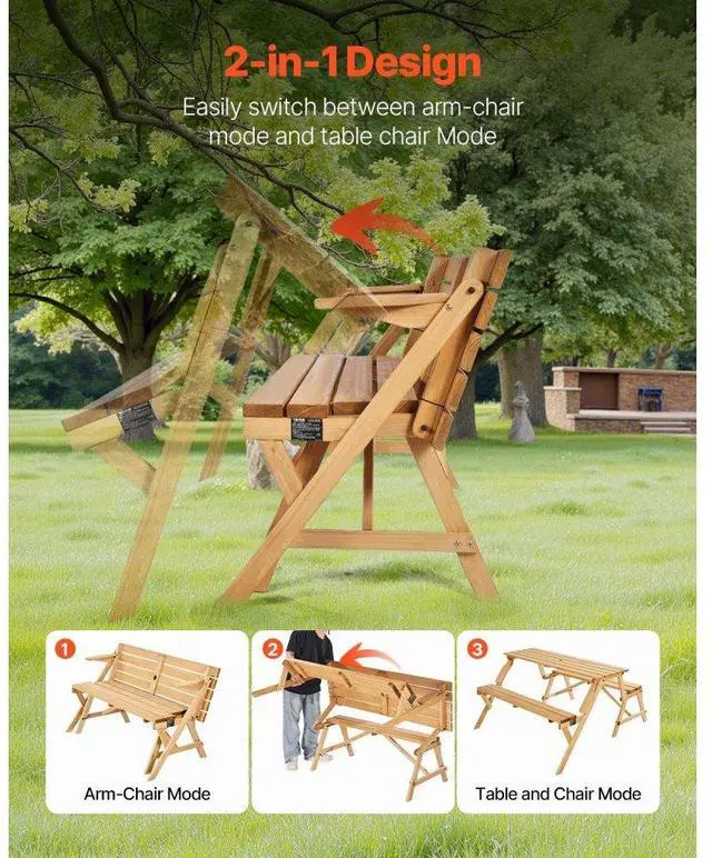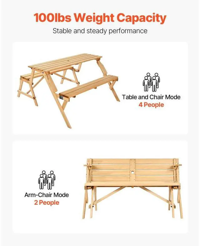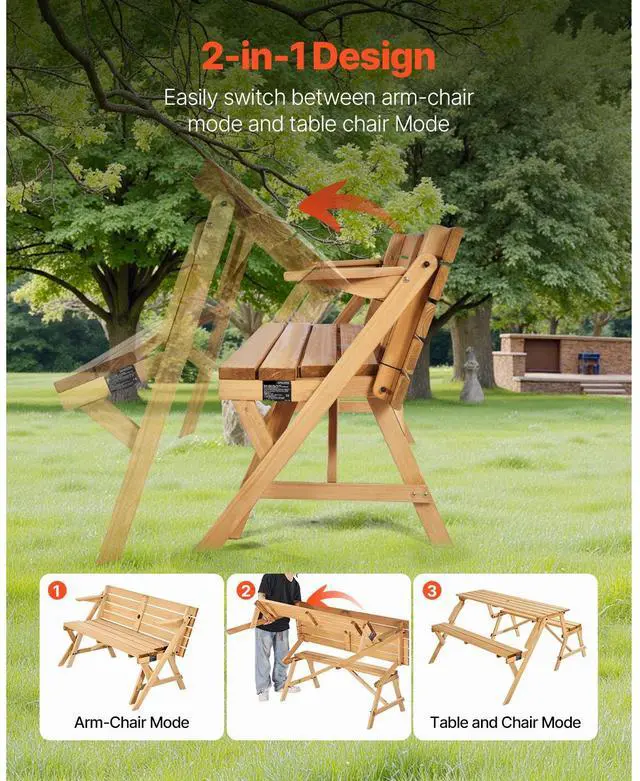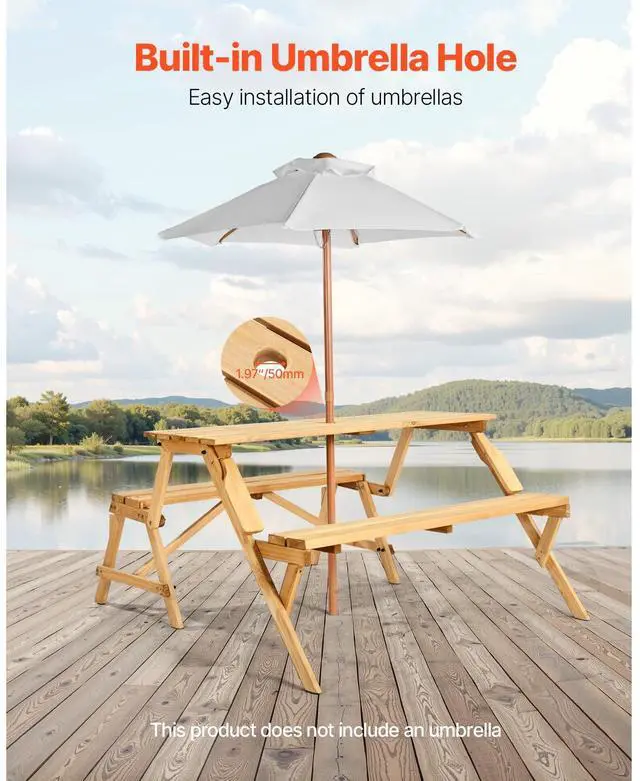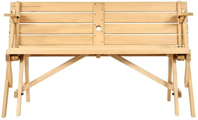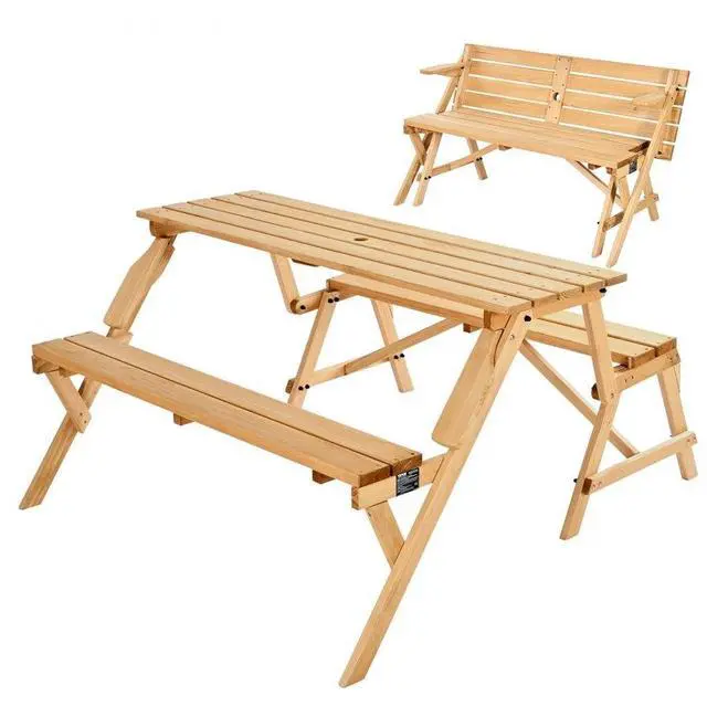2-in-1 Transforming Interchangeable Picnic Table Wooden Table Bench Set Outdoor Simple and Practical Design Premium Material Built-in Umbrella Hole Thoughtful