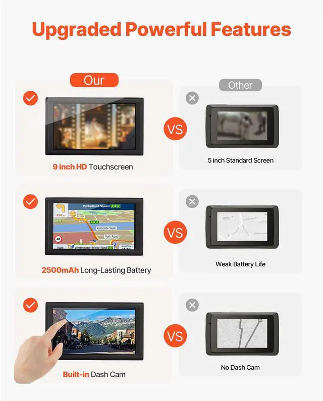GPS Navigator for Car 9 inch Touch Screen 16GB GPS Navigation System Dash Cam Accurate Navigation Drive Safer with Advanced Features Map Updates Easy Installation Multi-Mode Support Premium