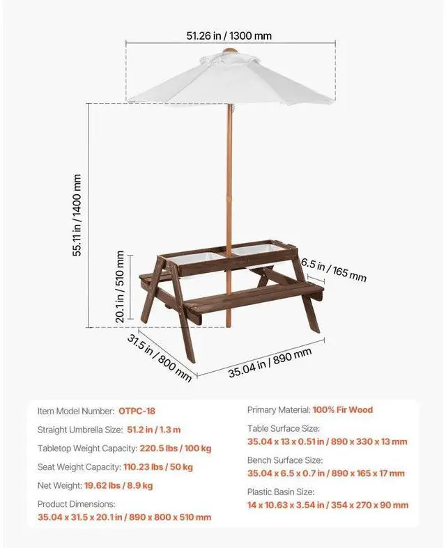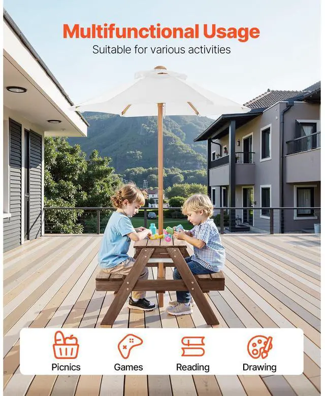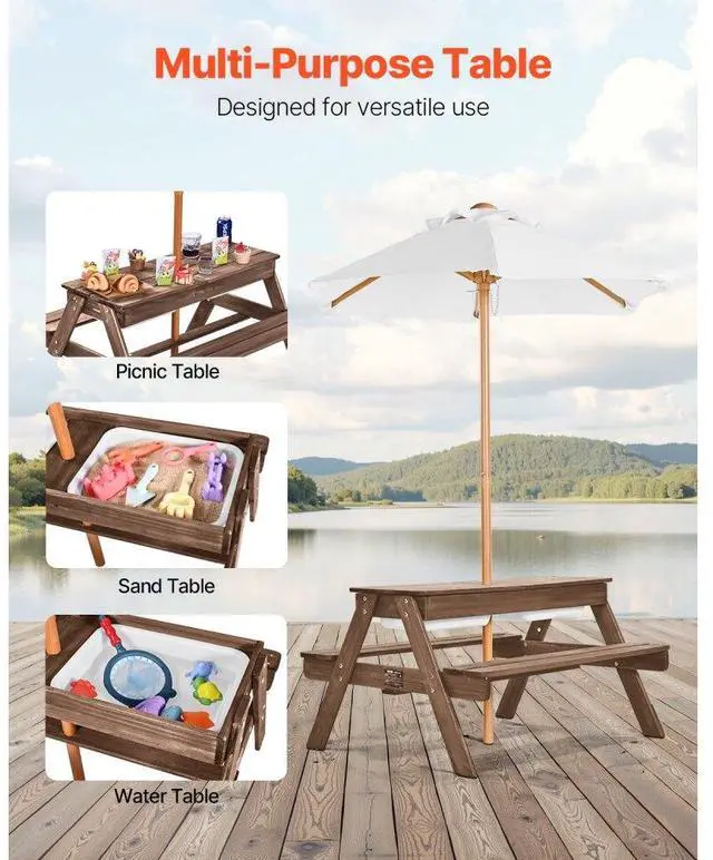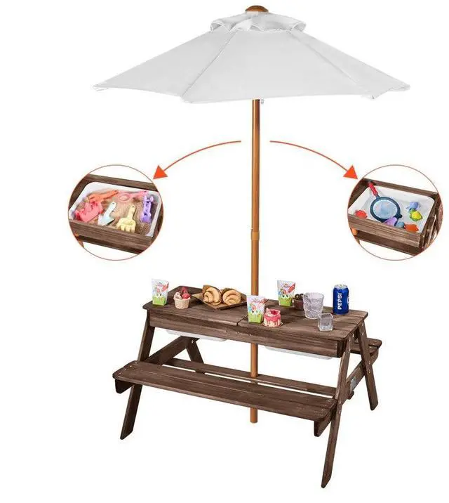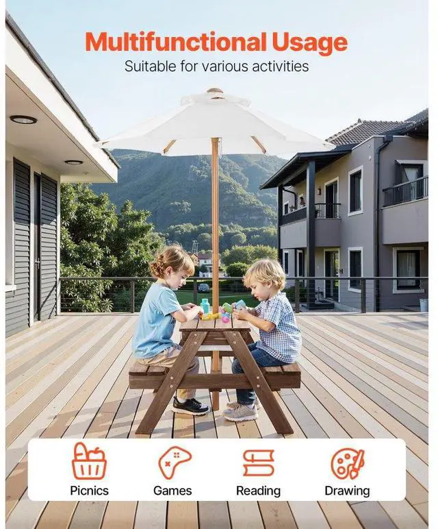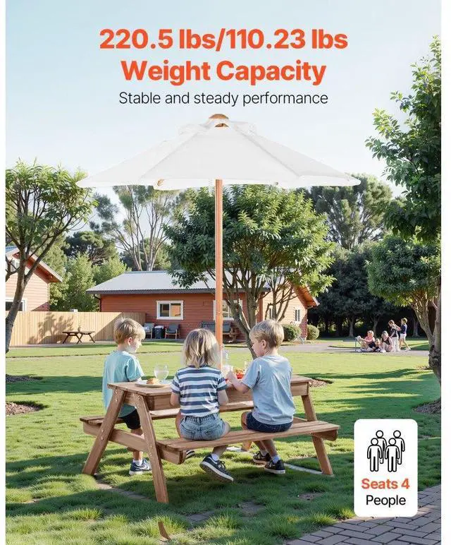 Picnic Table Wooden Tables and Bench Set with Umbrella Garden Indoor Outdoor Simple and Practical Design Premium Material Indoor & Outdoor Use Thoughtful
