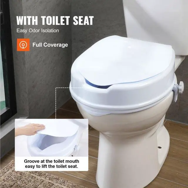 VEVOR Raised Toilet Seat, 4" Height Raised, 300 lbs Weight Capacity, Universal Toilet Seat Riser, Screw Rod Locking, with Toilet Seat, for Elderly, Handicap, Patient, Pregnant, Medical 4" Toilet Seat Riser Dual-Sided Knob Installation High-Strength Plastic Construction Sturdy Structure Easy to Open Durable in Humid Environments