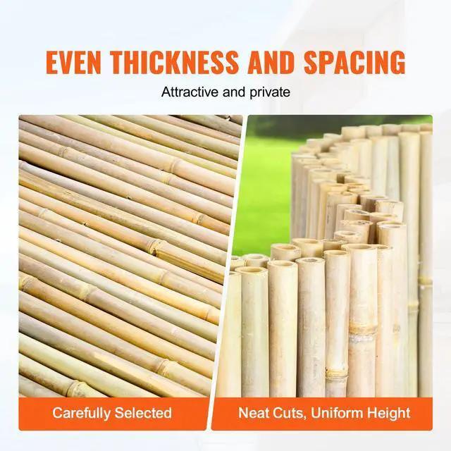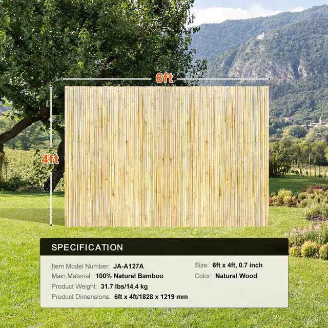 VEVOR Natural Rolled Bamboo Fence Bamboo Panel 4 ft H x 6 ft L x 0.75 in D. Protect Your Privacy Extended Durability Sturdy and Reliable Easy to Assemble Versatile Use Sustainable Choice Size: 6ft x 4ft, 0.75 inch, Color: Natural Wood, Item