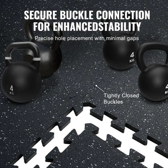 VEVOR 25 PCS 0.56" Thick Gym Floor Mats, 24" x 24" EVA Foam & Rubber Top Interlocking Workout Floor Mats with 100 sq. ft Coverage, Waterproof Exercise Puzzle Flooring for Gym, Home, Garage, Basement, Black & White Shock Absorption and Rebound Durable and Scratch-Resistant Strong Soundproofing Easy Assembly Convenient Cleaning Edge Protectors Thickness: 0.56 in, Area: 100 SQFT, Set