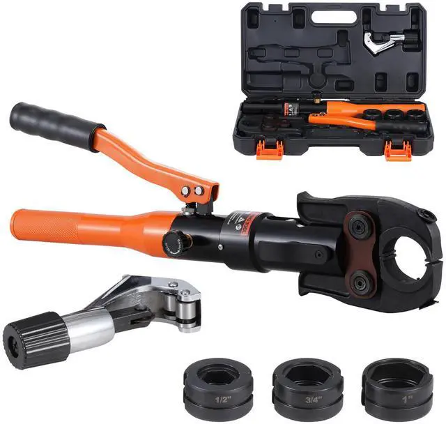 VEVOR Copper Tube Fittings Crimping Tool with 1/2" 3/4" 1" Jaws Pipe Cutter Multi-Functional Die Compatibility Efficient Hydraulic System Comfortable Handle Design Wide Application Durable and Reliable Structure User Safety and Comfort Number of