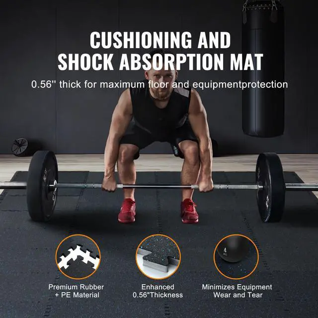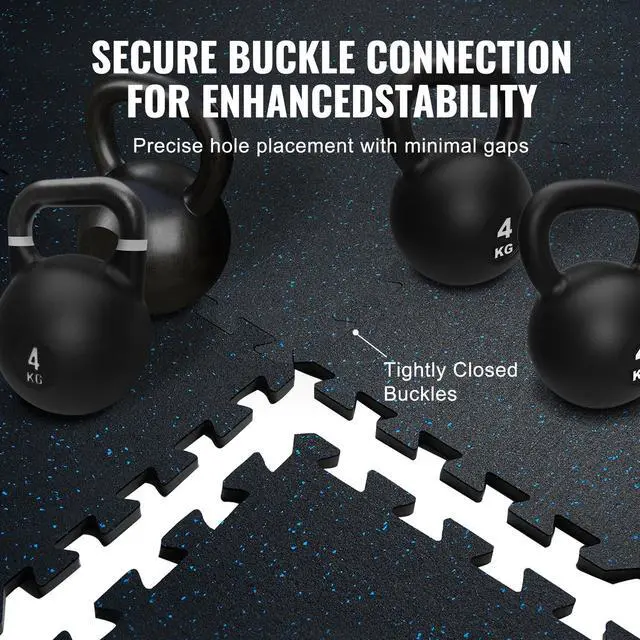VEVOR 12 PCS 0.56" Thick Gym Floor Mats, 24" x 24" EVA Foam & Rubber Top Interlocking Workout Floor Mats with 48 sq. ft Coverage, Waterproof Exercise Puzzle Flooring for Gym, Home, Garage, Basement, Black & Blue Shock Absorption and Rebound Durable and Scratch-Resistant Strong Soundproofing Easy Assembly Convenient Cleaning Edge Protectors Thickness: 0.56 in, Area: 48 SQFT, Set