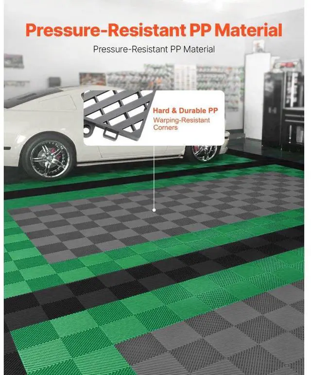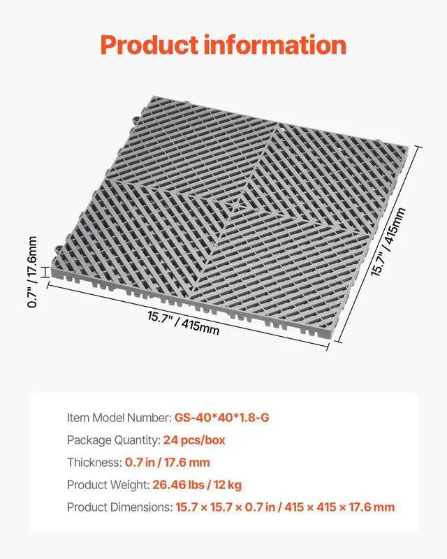 VEVOR Interlocking Drainage Mat, 15.7 x 15.7 Modular Interlocking Cushion Durable PP Material, 24 Pcs Splicing Drainage Mats, Non-Slip Drainage Floor Tile and Shower Mat, for Garage, Garden, Kitchen & Outdoor, Grey Tough PP Material Extra Thickness for Reliability Snap-Together Setup Slip-Resistant Surface Versatile for Any Space Built to