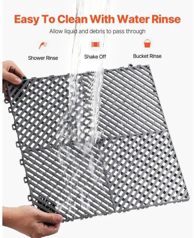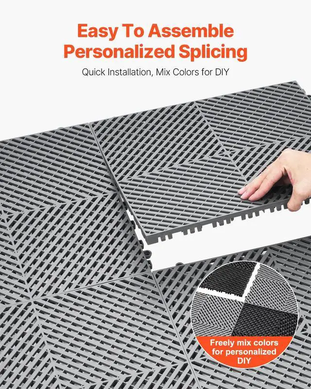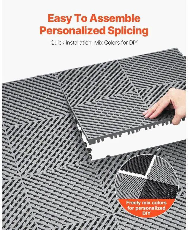 • VEVOR Interlocking Drainage Mat, 15.7 x 15.7 Modular Interlocking Cushion Durable PP Material, 24 Pcs Splicing Drainage Mats, Non-Slip Drainage Floor Tile and Shower Mat, for Garage, Garden, Kitchen & Outdoor, Grey